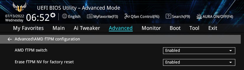 AMD© and other non-Intel platforms use a similar function, referring to it as Firmware TPM or fTPM. Like PTT, it may be enabled from the factory or require navigating into security settings in your UEFI menus, so refer to documentation for your exact location and steps to enable.